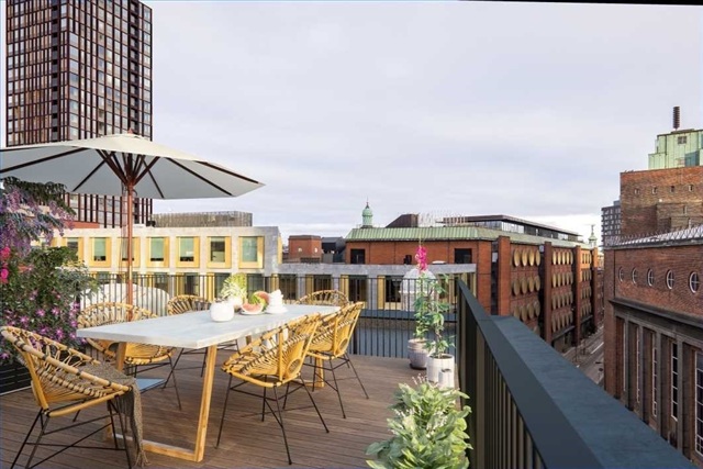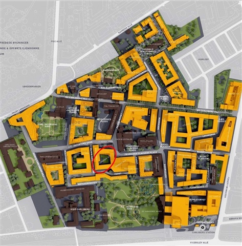 This charming apartment is situated in Steenstrup Hus, located in the heart of Carlsberg Byen, nestled between the bustling J.C. Christensens Gade and the tranquil Fadet. It shares its surroundings with protected historic buildings and the green oasis of J.C. Jacobsens Have directly adjacent.Designed by Vilhelm Lauritzen Architects, Steenstrup Hus is part of a brick-clad townhouse block that surrounds a welcoming, lush shared courtyard. The apartment itself offers two well-sized bedrooms, an open-plan kitchen and living area, and a stylish bathroom equipped with a shower. The living area opens onto a southwest-facing terrace overlooking the verdant courtyard, while both bedrooms provide direct access to a rooftop terrace that affords views of the protected neighboring buildings.