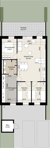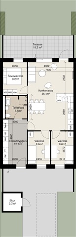 Located on Bronzealdervej within the sought-after Grauballe neighborhood, this modern and thoughtfully designed single-story townhouse offers four rooms. The residence combines functionality, natural light, and comfort, creating an ideal living space for those seeking a manageable and low-maintenance home surrounded by scenic nature, yet close to Silkeborg.Upon entering, you are greeted by a generous combined entrance and utility area, providing ample room for coats, footwear, and daily essentials. This space is also equipped with both a washing machine and dryer, ensuring household chores can be handled conveniently on site. The heart of the home is the spacious kitchen-living area, where the kitchen seamlessly merges with the living room into one bright, open space. There is enough room for a dining table as well as a cozy seating arrangement. From here, direct access leads out to a sunlit terrace, an inviting spot for relaxing mornings or summer evenings. The kitchen itself features modern minimalist finishes and includes all necessary built-in appliances, including a dishwasher, designed to make everyday cooking and socializing enjoyable.