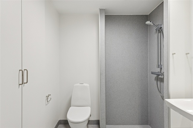 The residential complex in Tønder By offers a collection of 42 contemporary studio apartments built in 2025. Each unit is equipped with a kitchenette along with a private bathroom containing both toilet and shower facilities. Residents also benefit from individual storage rooms, while shared amenities include a parking lot and bicycle parking. The studios are arranged within three separate two-story wings, shaping a cozy courtyard at the heart of the development. This courtyard is bordered to the north by a large communal house, which serves as a central gathering point and features a spacious kitchen, restrooms, laundry facilities, and a sizeable common room.It should be noted that these apartments are currently offered with a temporarily reduced deposit: for one-room units, the deposit is set at DKK 12,000, while two-room units require a deposit of DKK 13,000.