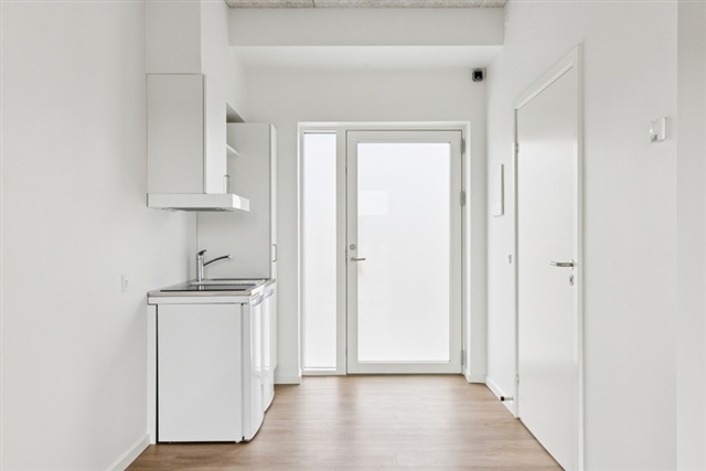 Situated in Tønder city, this residential complex offers 42 contemporary studio apartments completed in 2025. Each unit is equipped with a kitchenette, private bathroom, and toilet, along with a designated storage room. The residences are arranged across three two-story wings that enclose a cozy inner courtyard, which faces north and is bordered by a spacious community house. This common building, serving as a hub for residents, includes a large kitchen, restrooms, laundry facilities, and a generous shared room. Residents also benefit from shared parking spaces as well as bicycle storage. Notably, a temporary reduction in the deposit applies: 12,000 DKK for one-room apartments and 13,000 DKK for two-room units.The neighborhood consists of single-story terraced houses located in a quiet area close to the center of Tønder, specifically spread over four adjacent streets in the northeastern part of the town. This safe and family-friendly environment is set amidst pleasant green surroundings. Nearby facilities include Campus Tønder, providing student housing close to the Blue Gymnasium, and Kastaniebo, a supportive and secure residence for individuals with physical and mental disabilities.