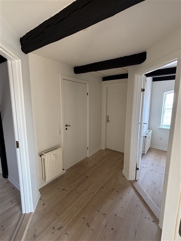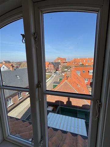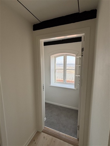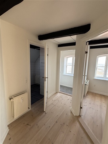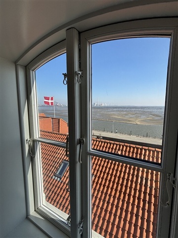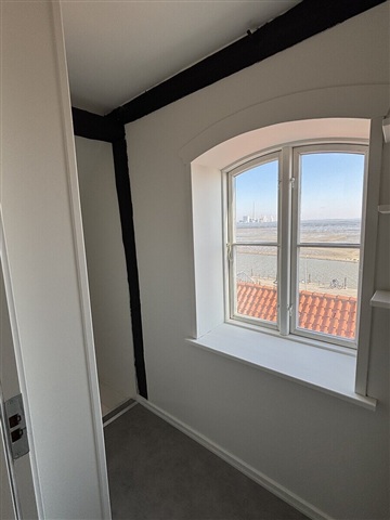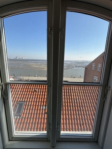 A charming four-room apartment located on the second floor in Nordby on Fanø is available for immediate rental. Upon entering, you are welcomed by a spacious hallway featuring ample wardrobe space. The residence includes two bedrooms, as well as a generous bathroom equipped with a shower and a washing column. Additionally, there is a guest toilet with a hand basin within the apartment.The large open-plan kitchen and dining area offer stunning views over the harbor entrance and Esbjerg, and the ferry terminal is conveniently situated only 400 meters away. Throughout the apartment, exposed beams and plasterboard ceilings are visible in every room, adding character to the space. The entire unit has been freshly painted just prior to move-in.