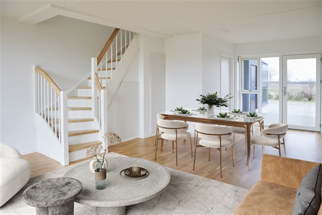 Located at Kaløvigparken, residents enjoy immediate proximity to diverse natural surroundings such as beach, forest, and open green fields, while remaining just a short drive away from urban amenities. It takes approximately 20 minutes by car to reach the center of Aarhus, and only a few minutes to Hornslet, where shopping, schools, daycare, and a light rail connection are readily available.