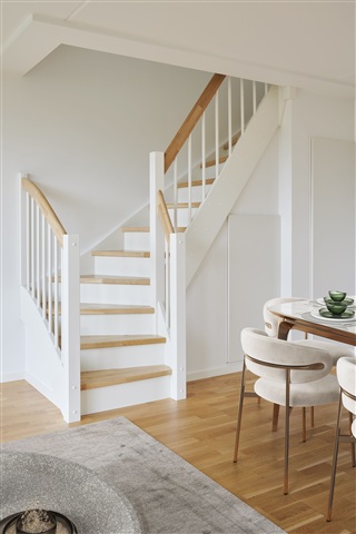 Designed with a consistent focus on Nordic minimalism, the interiors are complemented by abundant natural light streaming into every room. Outside, the property includes a front garden with a storage shed, and from the living room, there is direct access to a pleasant terrace.