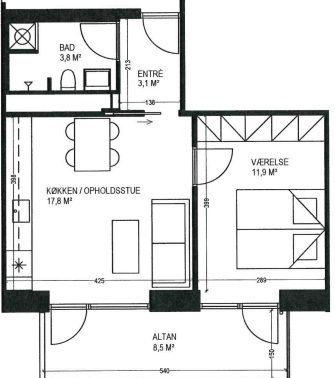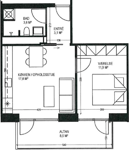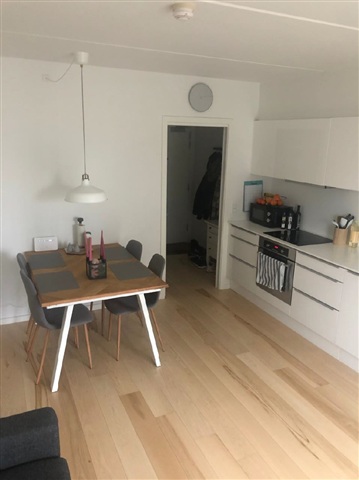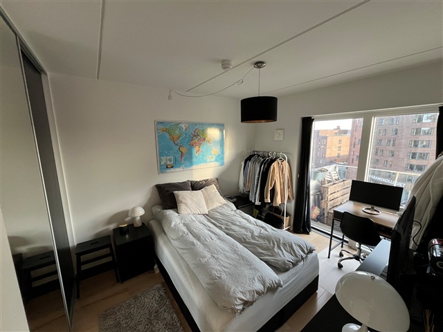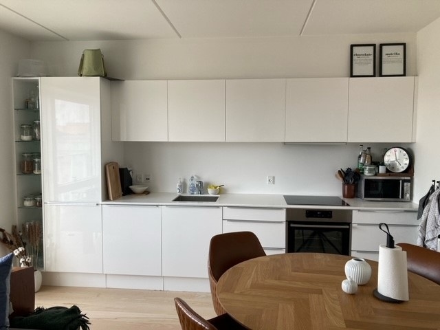 This apartment offers a spacious balcony measuring 9 square meters, along with a bright and contemporary open-plan kitchen area that comfortably accommodates both a dining table and a cozy seating corner. The kitchen comes fully equipped with a fridge/freezer, built-in oven, cooktop, extractor hood, and dishwasher. Both the kitchen-living area and the bedroom provide direct access to the sunny balcony. The bedroom is well-lit and features built-in wardrobes, while the bathroom is fully fitted with a shower enclosure, washing machine, and tumble dryer.The building includes an elevator, and the basement contains storage rooms, bicycle parking, as well as the option to rent a parking space. Situated in the sought-after Åhusene neighborhood, the apartment benefits from a central Aarhus location combined with scenic green surroundings alongside the Aarhus River. It is conveniently close to major educational institutions such as VIA University College, Aarhus University, the School of Architecture, and Aarhus Tech. Moreover, daily necessities, shops, restaurants, and cafes are all within walking distance.