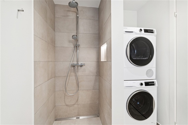 The building offers communal spaces designed to encourage socializing and includes facilities for bicycle storage. Convenient laundry facilities are also available on-site.