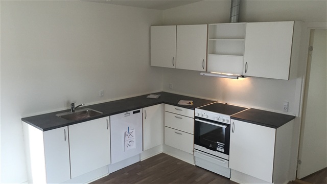 This spacious and bright apartment is located on the first floor. It features a large kitchen equipped with a dining area that seamlessly connects to the living room. The apartment offers two bedrooms, each fitted with built-in wardrobes, along with a bathroom that includes a shower space. The interior is designed with a TVIS kitchen and wardrobe cabinets, complemented by walls painted white and laminate wooden flooring throughout. Included are appliances such as a ceramic stove, an extractor hood, a sizable fridge-freezer unit, and a dishwasher.Residents have a private entrance to the apartment as well as access to a shared laundry facility. All utility costs are paid directly to the providers. Pets are strictly prohibited, and smoking inside the apartment is not allowed.