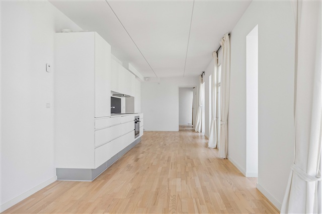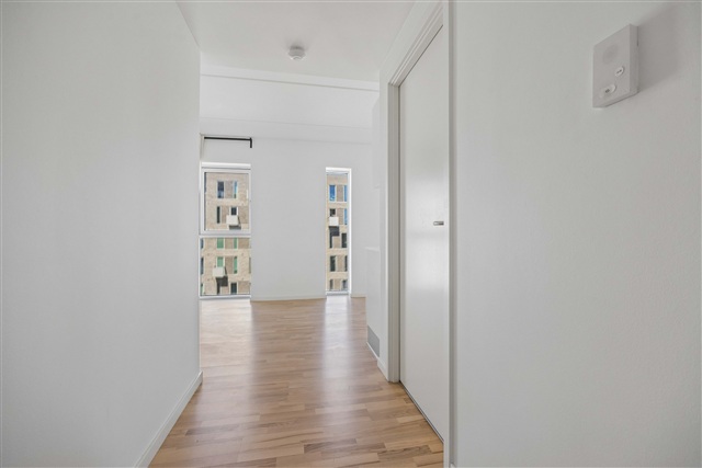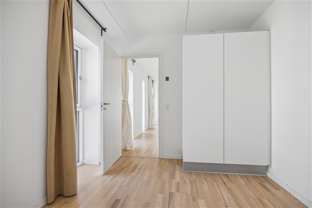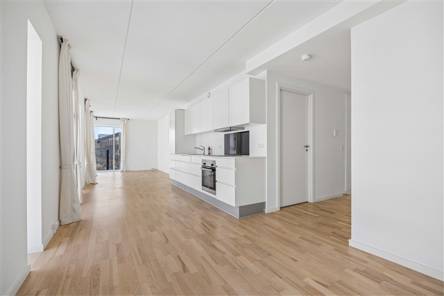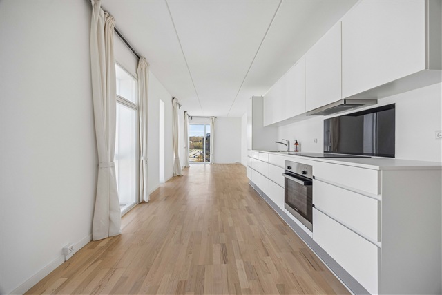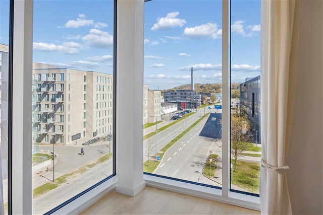 This bright and spacious two-room apartment features a well-thought-out layout and large windows, making it an ideal choice for couples or anyone seeking a home near Aalborg's Øgadekvarter. The residence offers an open and welcoming kitchen-living area, drawing in ample natural light throughout the day. The kitchen is sleek and modern, equipped with a dishwasher and an integrated fridge-freezer, designed to simplify everyday living.The bathroom is contemporary and efficiently designed, housing a combined washer-dryer unit. Additionally, the entire apartment benefits from underfloor heating. The bedroom includes built-in wardrobes, providing practical storage solutions and flexibility in furnishing options.