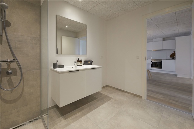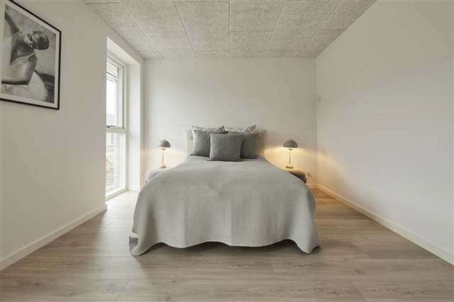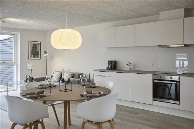 Located on Tåsingevej, this inviting end-terrace house offers 95 m² of well-organized living space across three rooms, set in a quiet and private spot. Being an end unit, the home benefits from additional natural light and a comfortable distance from neighboring properties. The central area of the house features an open-plan kitchen and living room, designed to accommodate everyday life efficiently. The kitchen is equipped with all necessary appliances and ample countertop space, while the living area provides room for both dining and a cozy seating arrangement. Expansive windows fill the space with light and lead directly out onto the terrace and garden.The residence includes a spacious main bedroom and a versatile additional room, adaptable to function as a home office, guest bedroom, or child's room depending on your requirements. The entrance area doubles as a utility room, offering storage solutions as well as housing the washing machine and dryer. A centrally placed bathroom is arranged with a simple yet practical layout.