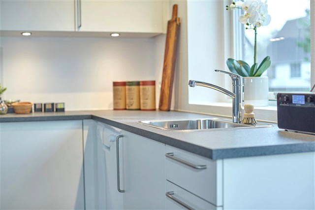 This well-designed terraced house is built on a single level and combines both comfort and quality throughout. The open and bright kitchen with dining area seamlessly connects to the living room, making it suitable for everyday life as well as hosting guests.The kitchen, supplied by HTH, features high-quality appliances including a combined fridge and freezer. Elegant oak plank laminate floors extend consistently throughout the entire home, lending a modern and harmonious feel. From the living room, there is direct access to a terrace and private garden, providing an ideal space to enjoy outdoor living.