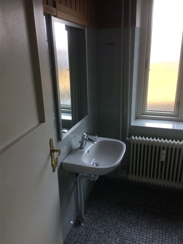 This bright 2½-room apartment is situated on the first floor and features a modern kitchen, a compact dining area, a hallway, a bathroom, a well-lit living room, and a bedroom. It offers a great living option for a young couple or an individual. Residents benefit from shared laundry facilities and access to a courtyard. The stairwell is well-maintained and presentable.
