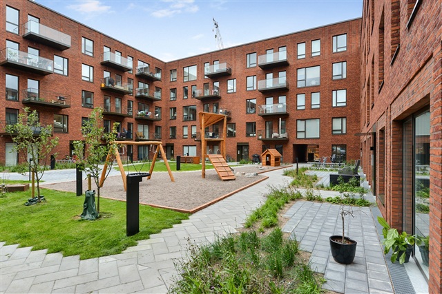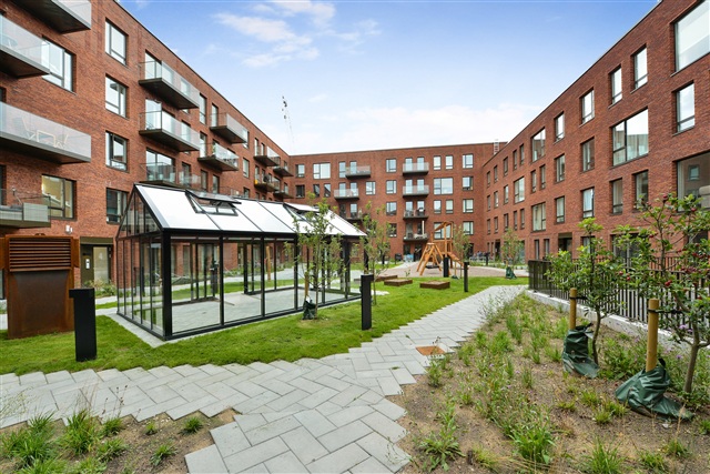 Poppelhuset comprises 110 newly constructed apartments ranging in size from 48 to 105 square meters, consisting of two to five rooms. These homes fulfill the desire for a sleek, modern living environment complete with either a balcony or terrace-ideal for enjoying fresh air and sunny weather. Residents also have access to a spacious and beautifully designed orangery within the courtyard, as well as a contemporary playground.