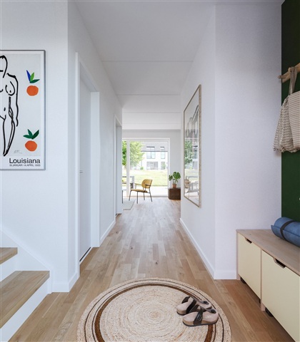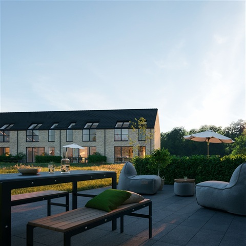 Located only 13 kilometers from Aarhus, Søgaardsparken offers this beautifully newly constructed townhouse. The residence presents an architect-designed layout featuring 4.5 rooms, providing ample space both indoors and outdoors.The layout spans two floors, where you will find a well-organized floor plan including an entrance area with plenty of room for coats and shoes, and a bright kitchen with an open-plan connection to the living room. The home features a stylish bathroom equipped with storage options and a laundry column. Additionally, there is a spacious, furnished landing area along with three standard bedrooms, each fitted with panoramic windows that include openable skylights. The property also includes access to a private terrace.