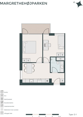 Located just 7 kilometers from the center of Aarhus, Margrethehøjparken offers this charming three-room apartment. The layout is carefully planned to maximize the use of every square meter, making it an ideal choice for those who desire stylish living within close proximity to city amenities.Inside, you will find an entrance hall spacious enough for coats and shoes. The bathroom is equipped with underfloor heating, ample cupboard space, and a combined washer and dryer unit. The apartment also features a large open kitchen and living area, complemented by two regular-sized bedrooms, each providing access to a balcony.
