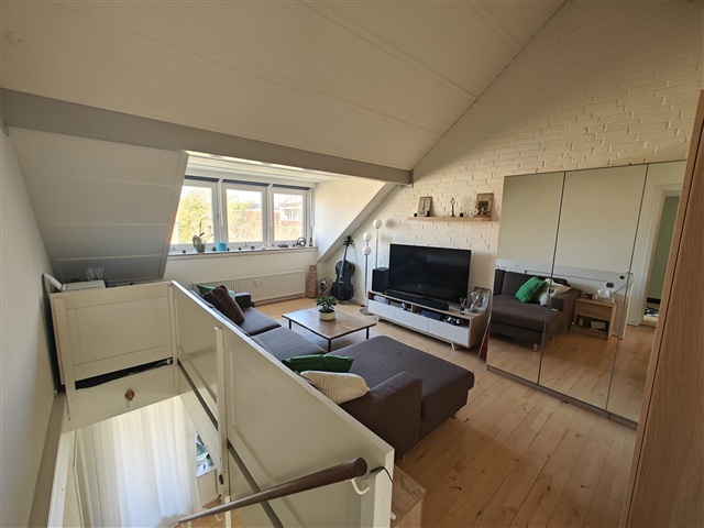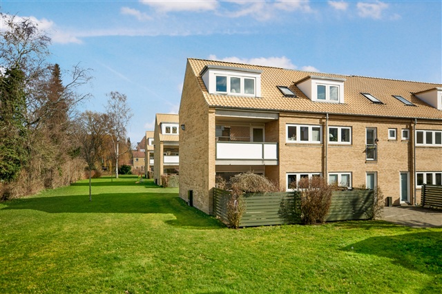 This charming four-room apartment spans two levels and benefits from abundant natural light throughout. It boasts an exceptional location within walking distance of all the city center's amenities, including shops and cafés along the pedestrian street. Nearby, you will find Munke Mose park with Odense River, walking paths, and green spaces, as well as convenient access to shopping options and the Odense Light Rail. Such a well-situated residence is truly rare to find in Odense.The apartment's layout features an entrance hall with wardrobe space and access to a bathroom, a spacious and well-equipped kitchen with ample cabinet storage that opens directly into the dining area. From the dining room, you can step out onto a lovely sun-drenched balcony. There is also a large bedroom with built-in closets on the main level. A staircase from the dining room leads to the upper floor, where the living room is located along with a second bathroom and another bedroom.