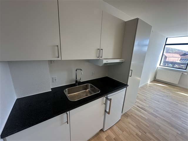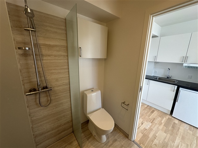 This newly renovated studio apartment is situated in the heart of Vejle, ready for immediate move-in. The unit features a bathroom equipped with underfloor heating, a washing machine, recessed lighting, a wall-mounted toilet, and a spacious shower. The living area, which connects openly to the kitchen, offers a comfortable space. The kitchen is furnished with a ceramic cooktop, a refrigerator with a freezer compartment, and a range hood. Residents have access to a large, shared terrace. There is an option to rent a parking space near the building. Viewings are available every day of the week-feel free to get in touch to arrange a visit.