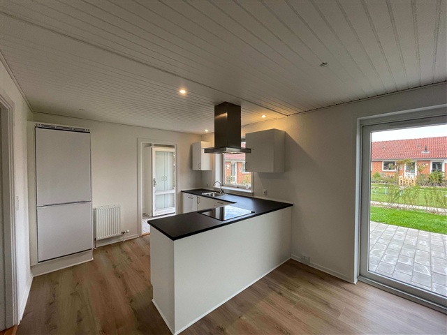 This recently refurbished townhouse is situated in Strib, an area featuring convenient proximity to local shops and schools, making it an ideal location for families. Nearby, you'll find expansive green spaces and parks that offer peaceful settings for leisurely walks. The property benefits from easy access to public transportation, ensuring strong connectivity to both the city and the wider region.Inside the rental unit, the layout includes an entrance area combined with a utility room equipped with a washing machine and dryer. An open-plan kitchen and living room create a communal space, complemented by two additional rooms and a dedicated bedroom with built-in wardrobes. The accommodation also features a bathroom for your convenience.