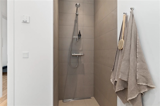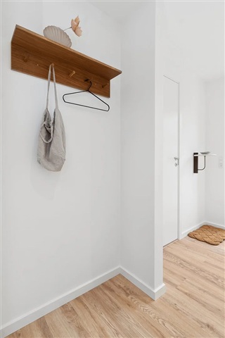 This charming townhouse combines contemporary Nordic design with a touch of village charm and is ready for immediate occupancy. It is situated in the sought-after neighborhood of Sønder Tranders and offers a welcoming ambiance throughout.Spanning 122 square meters, the residence contains four rooms, making it a perfect option for families or those in need of additional living space. On the ground floor, a bright and open-plan living area integrates the dining and lounge spaces seamlessly with the kitchen, which features ample countertop and cabinet storage suitable for everyday dining as well as entertaining guests. The living room opens onto a private terrace that overlooks a beautiful natural landscape. Upstairs, the layout includes a spacious master bedroom and two well-sized rooms, all benefiting from generous natural daylight. The property also includes two elegant bathrooms equipped with showers, and a convenient washing column can be found on the ground floor, contributing to the home's functionality.