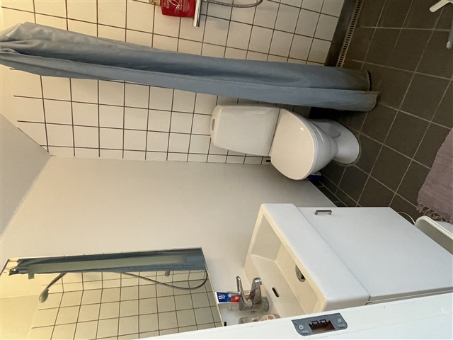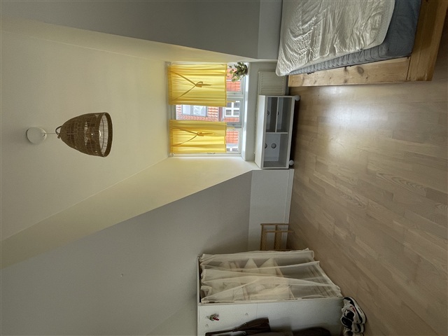This spacious and bright studio apartment, situated in the attic, features large windows that fill the space with natural light, complemented by high ceilings and cozy slanted walls. The kitchen is fully equipped with a refrigerator including a freezer compartment, a built-in oven, a cooking unit, an extractor hood, and a dishwasher. The bathroom offers generous room and includes a shower enclosure.In the basement, residents have access to a shared laundry facility, bicycle storage, and additional storage options. Furthermore, there is a pleasant communal courtyard area available for use. The apartment enjoys a prime location nestled conveniently between the quiet, charming Øgadekvarter district and the vibrant Vestergade, renowned for its abundance of cafes and restaurants. Nearby, green spaces such as the river and the botanical gardens provide natural retreats just around the corner. Additionally, major educational institutions are within easy walking or cycling distance, including Aarhus University located 1.5 kilometers away, VIA University College at 550 meters, and Aarhus BSS at 1.4 kilometers.