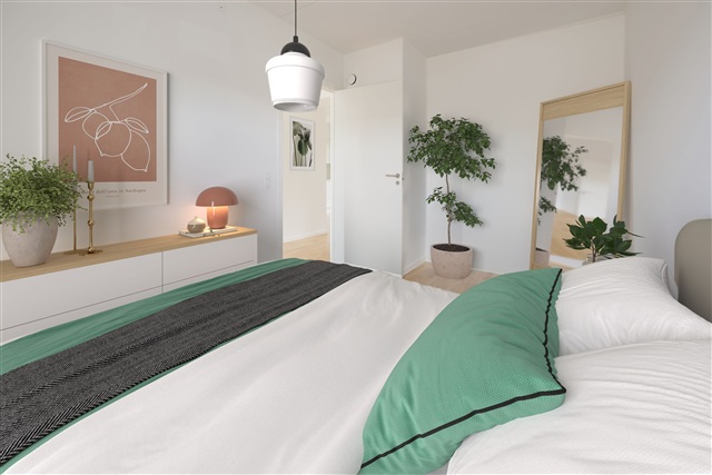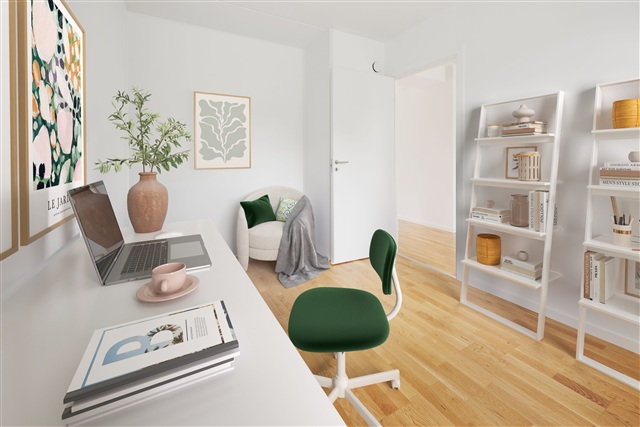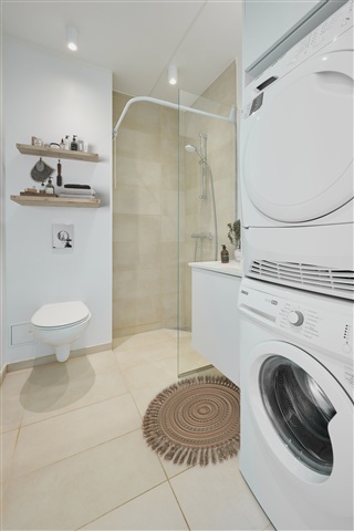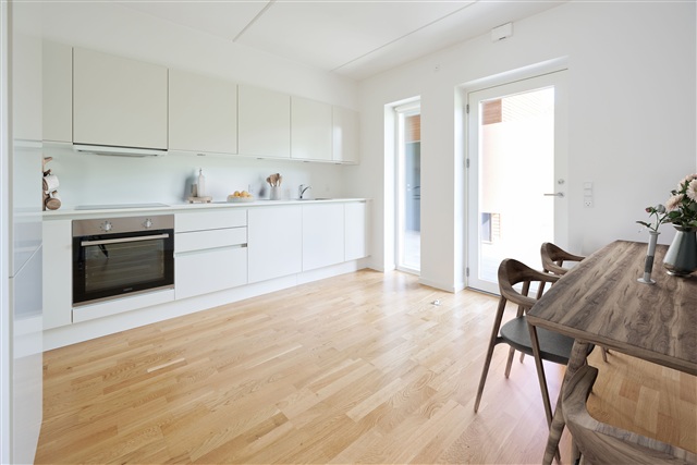 Located just 7 kilometers from the center of Aarhus and in close proximity to the charming neighborhood of Tilst-with its range of shopping options and active community life-Tulipanhusene presents this highly sought-after three-room apartment. It is ideally suited for two friends sharing or for those who desire additional living space.The layout maximizes every square meter, comprising an open-plan kitchen and living room area, which opens directly onto a large terrace. The bathroom features a spacious glass shower enclosure, built-in cabinetry, and a wall-mounted toilet. Two regular-sized bedrooms complete the apartment's accommodation.