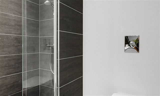 Every element of the apartment has been carefully considered. The floors are clad in oak planks, and the kitchen and utility room are equipped with cabinetry from HTH, accented by Børma fixtures. The layout includes two generous bedrooms and a bright, inviting kitchen-living area open to the living room. This open-plan design creates a welcoming living space centered around a thoughtfully designed kitchen with an island. Morning coffee can be enjoyed on the balcony, extending the living area outdoors. The apartment also features a spacious and well-appointed bathroom along with a functional utility room.