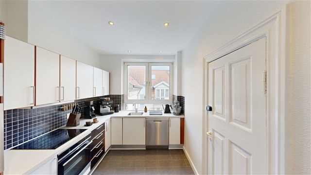 This spacious apartment is ideal for three or four individuals seeking affordable shared accommodation. It has been well-maintained and features a modern kitchen equipped with a dishwasher and a large fridge-freezer combination. There is ample cabinet and countertop space available. The bathroom has also been updated, boasting a separate shower area, storage beneath the sink, and LED lighting integrated into the mirror. The layout includes a relatively large hallway that connects to the various rooms throughout the apartment. The bedrooms are generously sized, offering plenty of natural light through the large windows.
