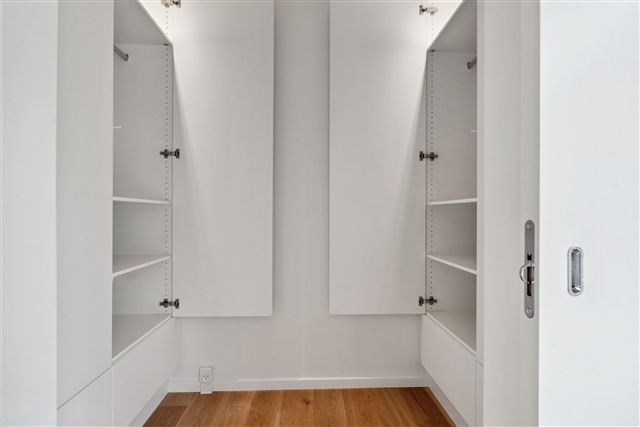 The master bedroom is large and includes direct access to a walk-in closet fitted with ample wardrobes featuring built-in spotlights. Throughout the entire home, underfloor heating ensures warmth and comfort.
