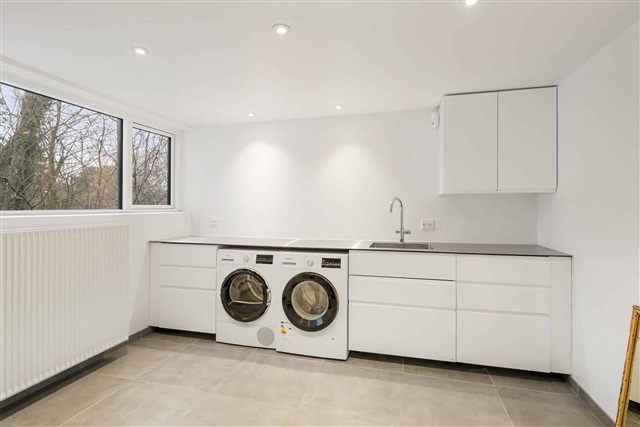 Additionally, the property includes a large garage with an automatic door. The location is exceptional, offering views of Øresund and close proximity to Skovshoved Harbor, Bellevue, and Dyrehaven. Skovshoved School is just 800 meters away, with Ordrup Gymnasium reachable within a 10-minute bike ride. Ordrup Station and Klampenborg are both accessible in just five minutes by bike.