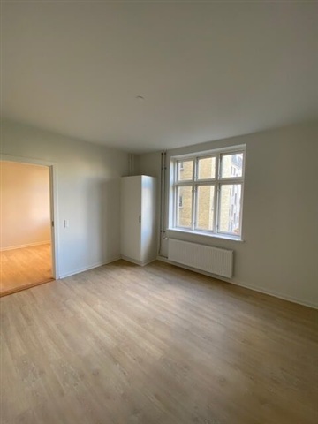 This beautifully renovated apartment is situated in the heart of Odense C, combining the vibrant city atmosphere with a peaceful and comfortable living environment. Featuring a contemporary layout and elegant finishes, it offers an ideal residence for those seeking central living without sacrificing style or quality.The rental unit includes an entrance hall, a bathroom equipped with both a washing machine and dryer, a living room featuring a bay window, a kitchen, a bedroom, and a versatile room that can serve as an office or children's bedroom with built-in wardrobes. Residents also benefit from access to a shared backyard area, which is paved and includes a grass lawn.