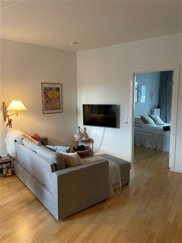 This apartment features a spacious open-plan kitchen and living area equipped with a contemporary kitchen that includes a refrigerator/freezer, built-in oven, stove, extractor hood, and dishwasher. The bedroom is bright and generously sized, offering access to a large balcony. The bathroom is modern and well-lit, furnished with both a washing machine and a dryer.The building includes an elevator for convenient access, and the basement provides bicycle storage as well as additional storage facilities. Situated in the sought-after Ceresbyen area, the apartment is surrounded by a vibrant environment with VIA University College's student community, numerous cafés, restaurants, and shopping options. Nearby green spaces include Ceres Park, the Botanical Garden, and the river area.
