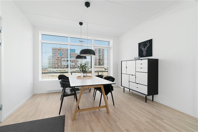 Situated right by the water in the heart of Aarhus Ø, the residences at Havneholmen offer a contemporary and bright living environment designed for comfort. The available apartments come in configurations of 2, 3, 4, or 5 rooms, each featuring either a terrace on the ground floor or a balcony starting from the first floor upwards. Every building entrance includes an elevator providing direct access from the underground parking to the individual apartments, ensuring daily practicality and ease of use.Inside, the homes are arranged with an open-plan living area combining the kitchen, dining space, and living room into one bright and spacious environment. Expansive windows allow abundant natural light to fill the rooms while also providing pleasant views. Bedrooms are equipped with built-in wardrobes, and the bathrooms come with underfloor heating, a separate shower cubicle, and a laundry column. High-quality materials have been consistently selected throughout, such as ash wood flooring and sleek fittings from JKE Design.