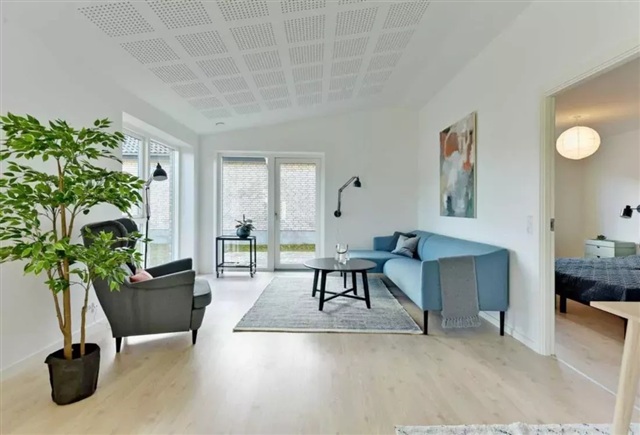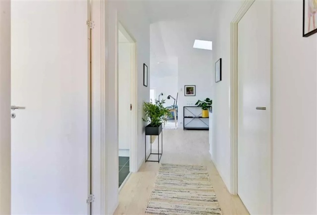 This residence is well-suited for families with children or couples seeking a tranquil setting near Aarhus. Featuring well-maintained interiors and a layout designed to maximize natural light, the townhouse showcases an open-plan living and kitchen area. The kitchen is contemporary and fully equipped, while the living room benefits from large windows that offer a pleasant view of the garden. The property includes a spacious master bedroom alongside two additional rooms, perfect for either children or a home office. A modern bathroom and a practical utility room are also part of the home. Outside, the property offers a private driveway with parking space for two vehicles, a useful storage shed, and an attractive garden highlighted by a paved terrace ideal for relaxation and social gatherings.This house belongs to a complex comprising a total of 43 townhouses, all situated within a newly built, gated community on the outskirts of Hinnerup. Residents can enjoy access to communal green areas designed for their benefit, including a playground equipped with a bonfire area, picnic benches, and more.