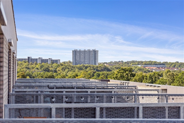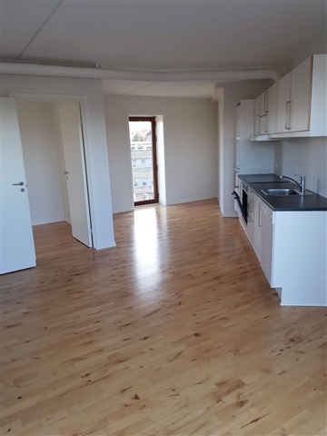 This charming apartment, situated on the third floor, boasts a spacious terrace with a remarkable view. The entire residence features underfloor heating, enhancing comfort throughout. Positioned on Skanderborgvej in Viby J, the unit presents well-utilized living space characterized by a bright atmosphere and a sleek Nordic design. It includes two bedrooms, a combined kitchen and living area, a large bathroom, and a generous terrace that offers impressive sightlines.The interior is finished with quality fixtures and comprises essential appliances such as a dishwasher, washing machine, tumble dryer, oven, and fridge/freezer, along with ample storage solutions. The concrete ceiling contributes to excellent soundproofing, while the integrated ventilation system helps maintain a healthy and pleasant indoor climate year-round. High-speed fiber internet connectivity is installed, enabling rapid data access. The location is highly convenient, situated close to shopping options, public transportation, and the center of Viby.