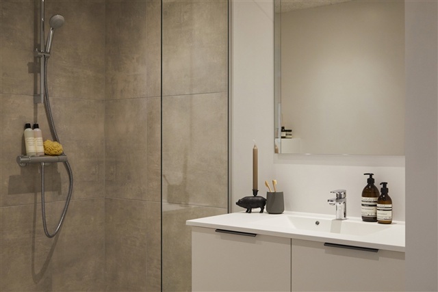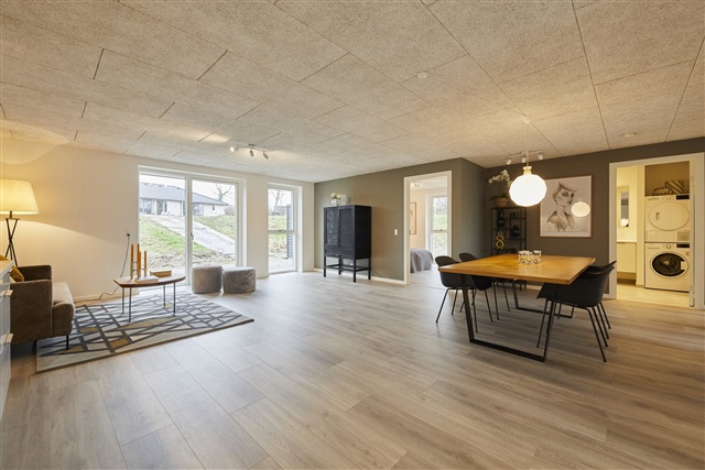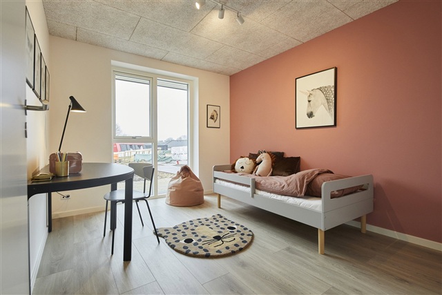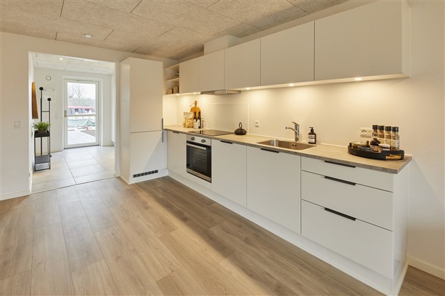 This inviting end-terrace house offers four rooms spread over 105 square meters, boasting a well-thought-out layout and ample natural light streaming through large windows, creating an airy and open atmosphere. The heart of the home is the spacious combined kitchen, dining, and living area, providing enough room for a dining table as well as a cozy seating corner. The sleek kitchen, arranged in an L-shape, includes generous work surfaces and additional storage options. From this living space, there is direct access to the terrace and garden, making outdoor living an effortless extension of everyday life.The three bedrooms, accessible from the dining area, include a large master bedroom equipped with built-in wardrobes and two further versatile rooms that can be adapted to suit various needs. The modern bathroom accommodates laundry facilities, ensuring convenience and functionality in day-to-day routines. Upon entering, a practical storage wall offers ample space for coats and belongings, contributing to a tidy and calming entrance environment. Positioned as an end-terrace, this residence benefits from increased natural light and enhanced privacy. The private terrace and garden provide ideal surroundings for relaxation and outdoor activities. Constructed with underfloor heating throughout all rooms and equipped with a ventilation system, the home guarantees a comfortable indoor climate all year round. Pets are permitted subject to approval.